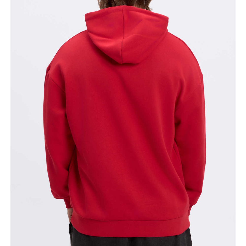 Детали: прямой крой, карман-кенгуру, одношовный капюшон, широкие эластичные резинки по низу и на манжетах, спущенная линия плеча.
